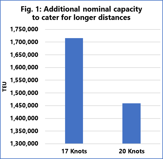 Sea Int. afferma che la circumnavigazione dell’Africa richiederebbe tra gli 1,4 e gli 1,7 milioni di TEU di capacità navale aggiuntiva. Si tratta del 5,1%-6% della capacità totale globale offerta dalle navi portacontainer.