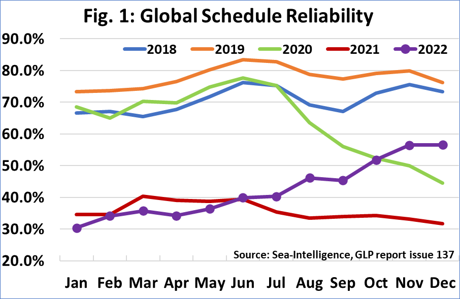 Continua a migliorare l’affidabilità (in termini di puntualità) delle navi portacontainer. Lo certifica l’ultimo rapporto sulla Global Liner Performance, appena pubblicato da Sea-Intelligence.