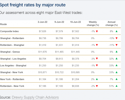 Questa settimana i valori sono aumentati del 2% rispetto a quella precedente. In aumento del 3% i noli sulla Shanghai - Genova