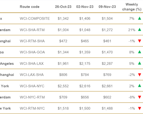 Le tariffe del trasporto marittimo di container sono salite a 1504 dollari per ogni container da quaranta piedi trasportato