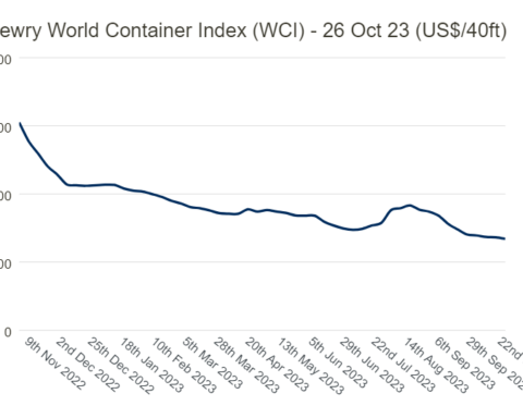 Le tariffe di trasporto container, attestatesi attorno ai 1342 dollari a FEU, sono del 6% più basse rispetto al pre-pandemia