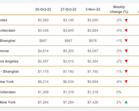 Il World Container Index di Drewry è calato del 3% questa settimana, a 3050 dollari a FEU