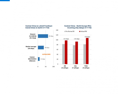Alphaliner: nel trade Cina/California le navi hanno cumulato 38 giorni di ritardo medio