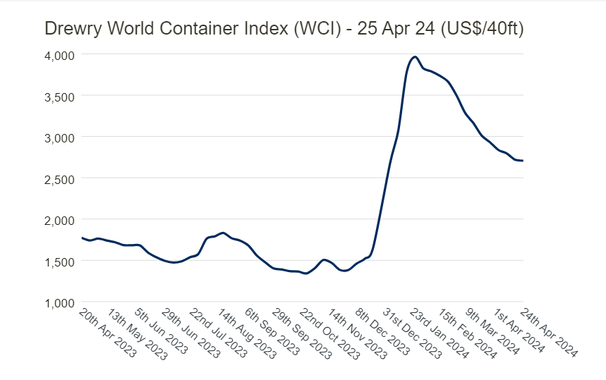 Le tariffe di trasporto si aggirano oggi attorno ad una media di 2706 dollari per ogni container da quaranta piedi trasportato e risultano comunque essere superiori del 55% rispetto ai valori della stessa settimana dell’anno scorso e del 90% superiori rispetto ai valori pre-pandemici.