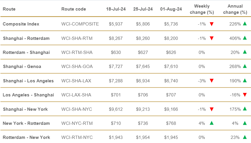 Nel dettaglio, le rate da Shanghai a Los Angeles sono diminuite del 3%, a 6740 dollari a FEU, in calo, dell’1% ciascuno, i noli sulla Shanghai – Rotterdam e sulla Shanghai – New York, attestatisi rispettivamente a 8200 e a 9166 dollari a FEU.