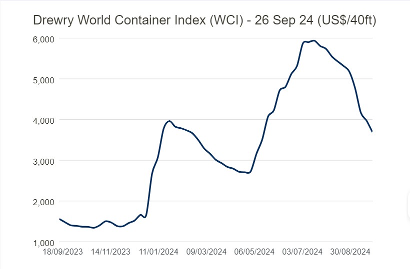 Le tariffe di trasporto marittimo nel settore container sono calate del 7% rispetto alla scorsa settimana, attestandosi attorno ai 3691 dollari a FEU.