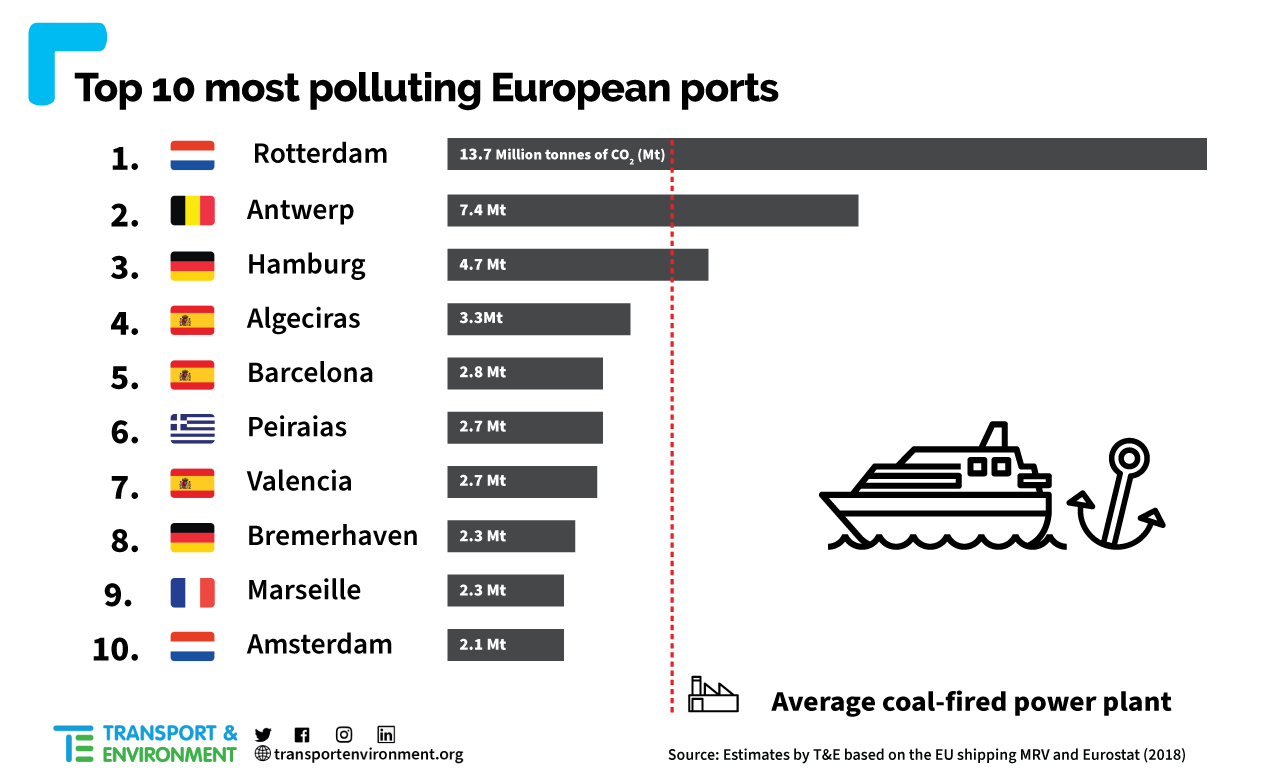 With 14 million tonnes of CO2 emissions per year, Rotterdam is the European port that pollutes the most, according to Transport & Environment in their study on how much climate impact port activities have.