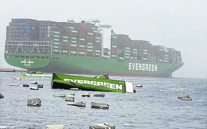 Evergreen attributed the rolling to several possible factors, including a tsunami caused by the recent earthquake in Russia, poor sea conditions in South America, or a sudden surge of waves.