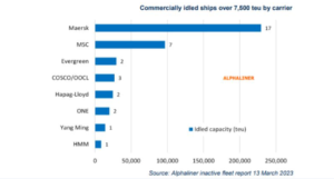 Tra le varie compagnie di navigazione, soltanto COSCO ha messo in naftalina più di due navi da 7500 TEU di capacità, tre per l’esattezza. Gli altri big carrier non superano la soglia delle due unità.