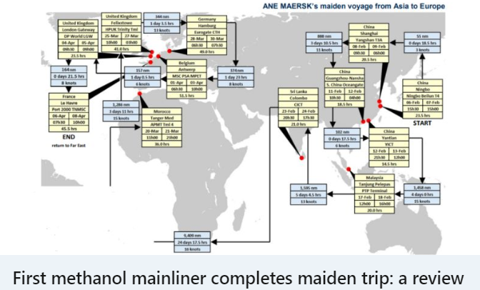 La prima nave di linea al mondo alimentata a metanolo, la ANE MAERSK da 16.592 teu del Gruppo Maersk, battezzata il 26 gennaio scorso nel cantiere sud-coreano di HD Hyundai Heavy Industries ed entrata in servizio a febbraio, ha concluso nei giorni scorsi il suo primo viaggio commerciale dall’Asia all’Europa.