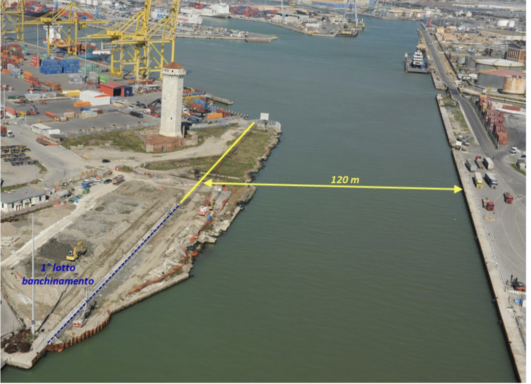 Interventi sono necessari per realizzare il banchinamento di una delle sponde della via di navigabile al porto commerciale, oggi larga nel tratto più stretto non più di 60 metri, 90 metri nel tratto più largo.