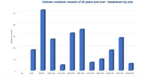 In termini di capacità, queste vecchie portacontainer rappresentano il 10,5% della flotta mondiale, la cui capacità complessiva si aggira attorno ai 27,6 milioni di TEU.