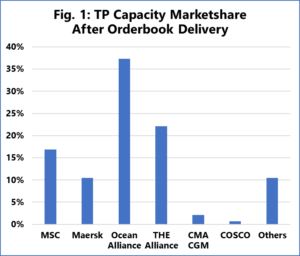 Nel caso ipotetico che le altre due alleanze (The Alliance e Ocean Alliance) rimangano intatte e che le navi ordinate in questi anni vengano consegnate in tempo, i cambiamenti nella quota di mercato della capacità dispiegata da ciascun operatore potrebbero essere dirompenti.