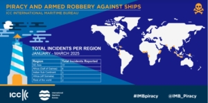 Cresce nel 2025 la preoccupazione per l’aumento degli episodi di pirateria marittima. Lo conferma con gli ultimi dati del primo trimestre l’Imb; International Maritime Bureau, organizzazione dell’Icc (Camera di Commercio Internazionale) specializzata nella lotta contro la criminalità marittima che dispone di una sezione dedicata ai crimini della pirateria.