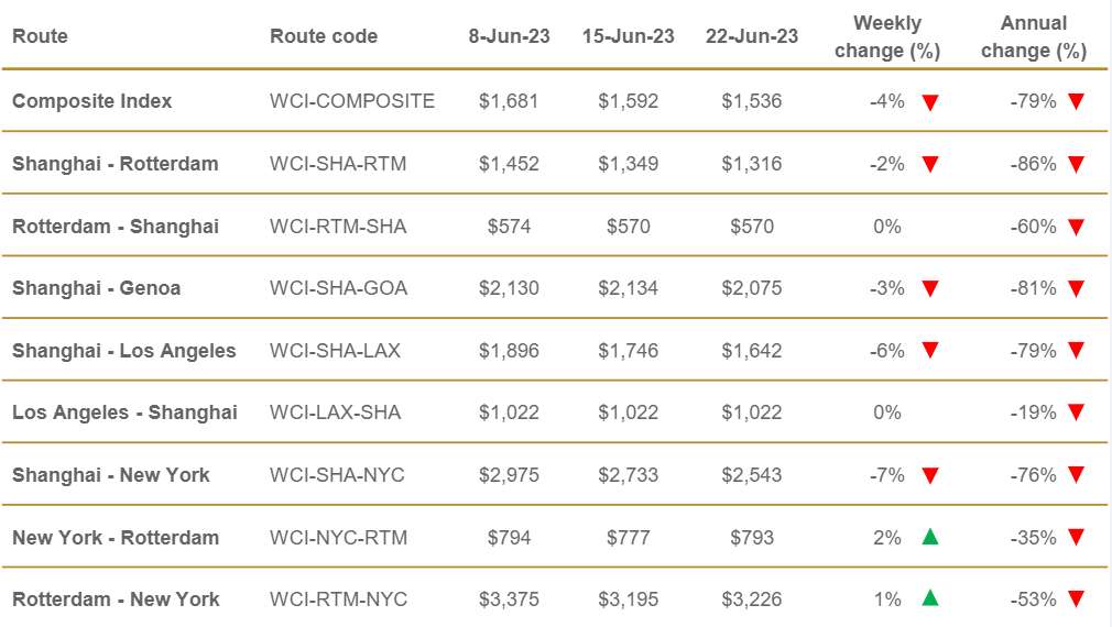 Questa settimana le tariffe di trasporto marittimo sono calate in media del 3,5% rispetto a quella precedente, a 1.535 dollari per ogni container da quaranta piedi trasportato.