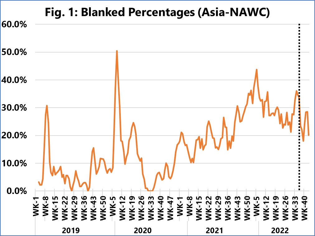 A rilevarlo sono i dati forniti da Sea Intelligence in un report nel quale si segnala che nelle settimane successive alla festività cinese sarà annullato sul trade transpacifico il 22/28% delle spedizioni contro il 15/17% dei blank sailing registrati nello stesso periodo del 2019 e la media del 9/11% del quadriennio 2014/2018.