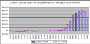 Il 2022 è stato uno degli anni migliori nella storia del trasporto container in termini di guadagni netti per le principali compagnie di linea. A certificarlo una indagine del broker marittimo e fondatore di Blue Alpha Capital, John McCown, dalla quale si evince come i big carrier abbiano totalizzato nell’anno appena trascorso un profitto netto combinato di 215 miliardi di dollari.