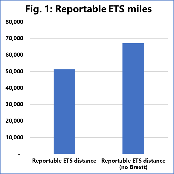 Sea Int ha mappato le rotazioni portuali dei servizi di collegamento offerti lungo le rotte del Nord Atlantico (dal Nord America al Nord Europa), calcolando la distanza di navigazione complessiva per la quale le emissioni devono essere rendicontate, e basandosi su due diverse circostanze: una basata su la realtà attuale in cui il Regno Unito è di fatto realtà extra comunitaria e l’altra basata su come sarebbe stata la situazione se il Regno Unito fosse rimasto nell’UE.