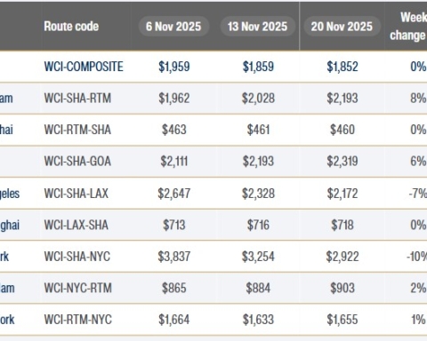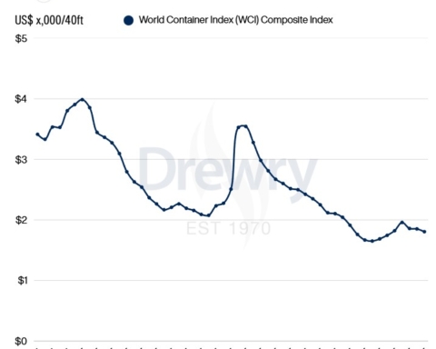 Dopo 6 settimane di incrementi consecutivi, Drewry registra la battuta d'arresto dei noli sul trade Asia-Europa