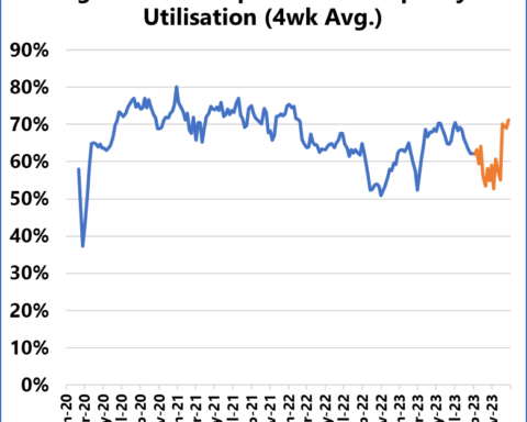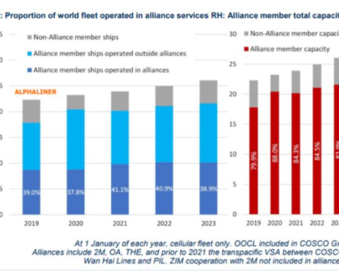 Dall'analisi di Alphaliner emerge come la flotta complessiva delle portacontainer risulti oggi pienamente impiegata