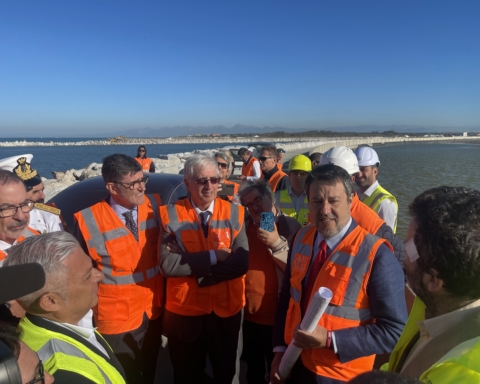 Il Ministro delle Infrastrutture in visita all'area di cantiere della maxi opera destinata a dare un nuovo futuro al Porto di Livorno