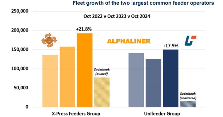 Da ottobre 2023, la flotta di X-Press è aumentata del 21,8% ovvero di 35.000 TEU mentre la flotta del rivale è aumentata del 17,9% o di 23.000 TEU.